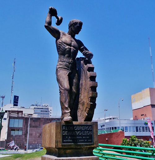 Lithograph references the Monterrey Monument to Workers (Monumento al Trabajo) which bears the inscription, "a los obreros de Nuevo Leon" (to the workers of Nuevo Leon).