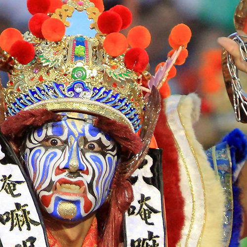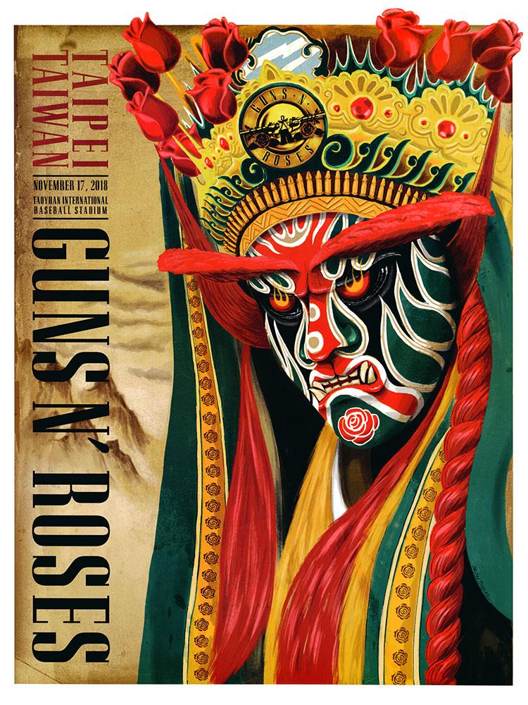Lithograph features stylized elements of a "Sheng" costume that is found in traditional Taiwanese opera.