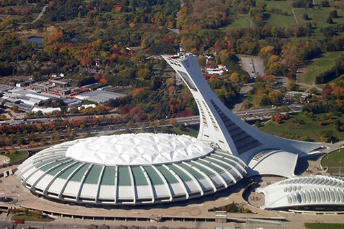 the pinky finger exposed. The vehicle is designed to look like Olympic Stadium complete with Montreal Tower. |