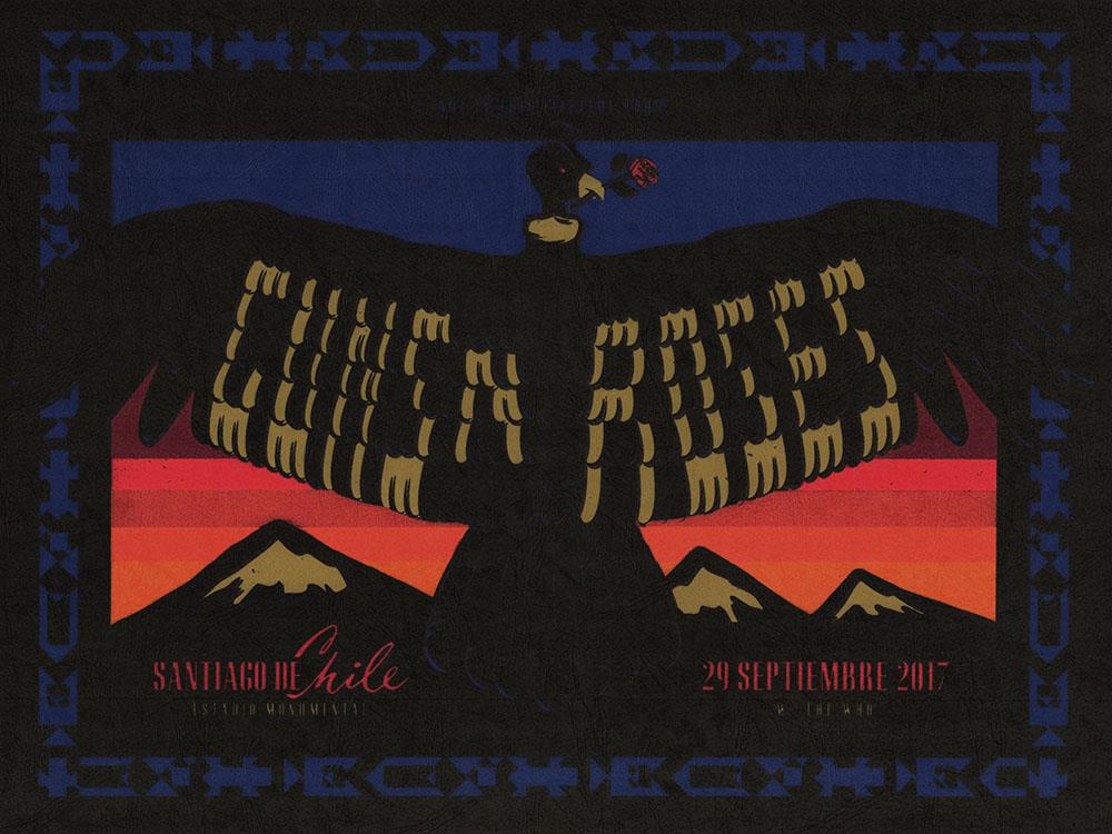 Reference: The Andean condor is a national symbol for many South American countries including Chile. The border is done in a style similar to Mapuche textile art. The Andes are depicted in the background.
