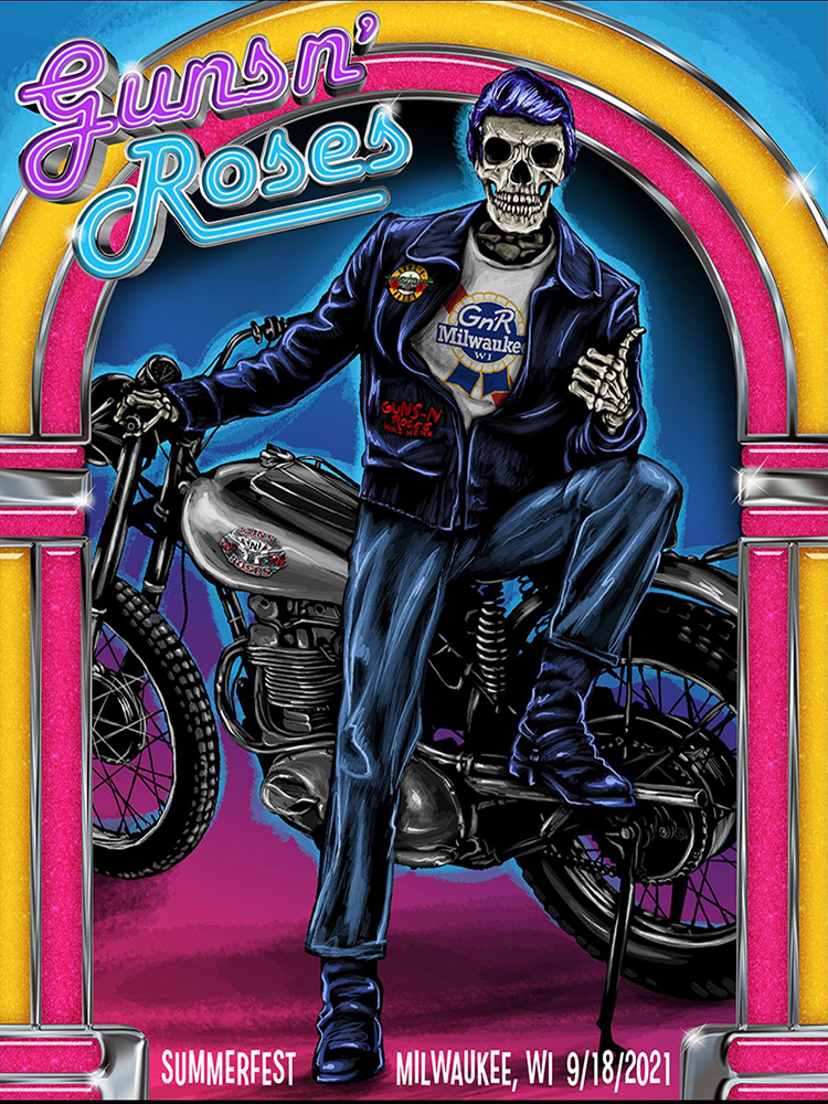 The design references the TV show "Happy Days" and one of its iconic characters, "The Fonz" - whose shirt features a logo parody of Milwaukee's famous Pabst Blue Ribbon beer.