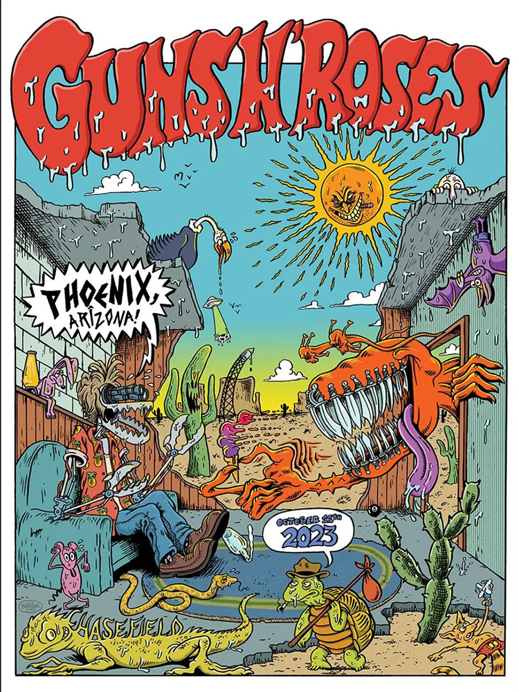 comedy "Raising Arizona" featuring Nicolas Cage. The concert was originally to be held at Chase Field, but late changes in the postseason fate of the local Arizona Diamondbacks required the concert to be relocated to Talking Stick Resort Amphitheatre. Such a late change resulted in the venue attribution remaining unchanged and therefore erroneous. |