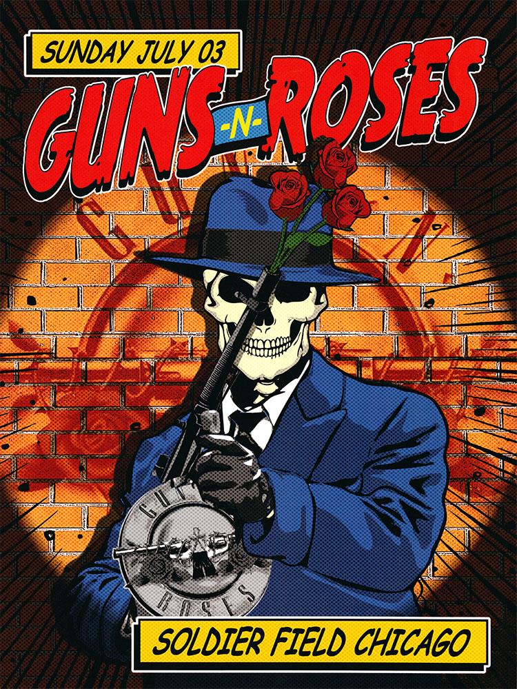 Reference: Chicago's gangster history. Comic book-style design with faux dithering.
